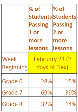 Our expectation for math is that students pass at least one lesson per week on iReady. Students also MUST complete a minimum of 40 minutes each week. Lessons are personalized for each student so they should be challenged at an appropriate level. I am monitoring lessons that all our students complete and offering an incentive (aside from the academic benefits) to those students that pass TWO or more lessons. I hope this assists in motivating our students to utilize this tremendous resource. Please assist us in encouraging your child to strive to complete two or more lessons each week.